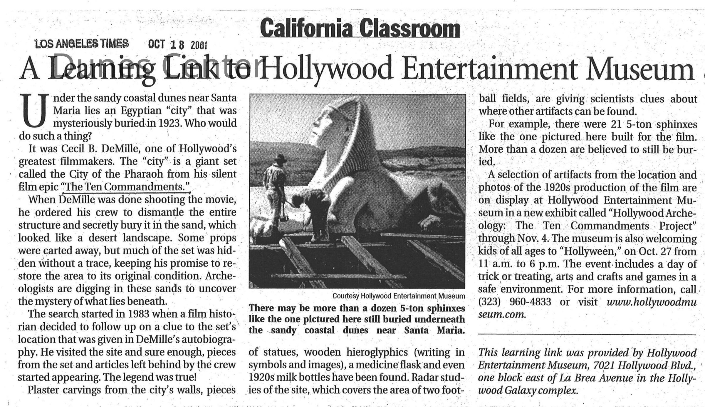 Los Angeles Times article October 18, 2001. Ten Commandments