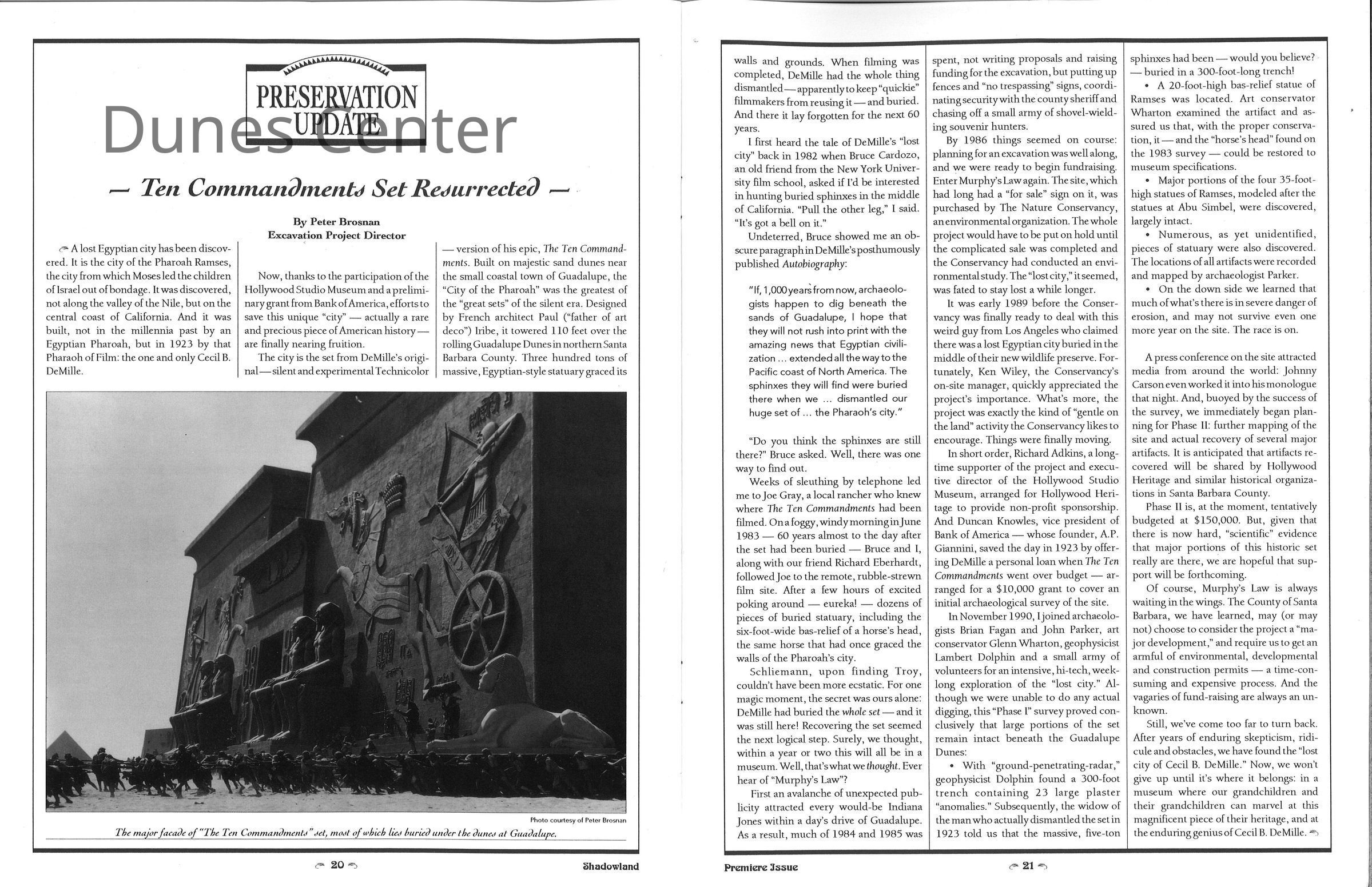Shadowland: The Journal of the Hollywood Studio Museum (DeMille and the Making of 'The Squaw Man' Buried Set Rescued from the Sands of Time California Filmmaking Site Map and History) artilce. Ten Commandments