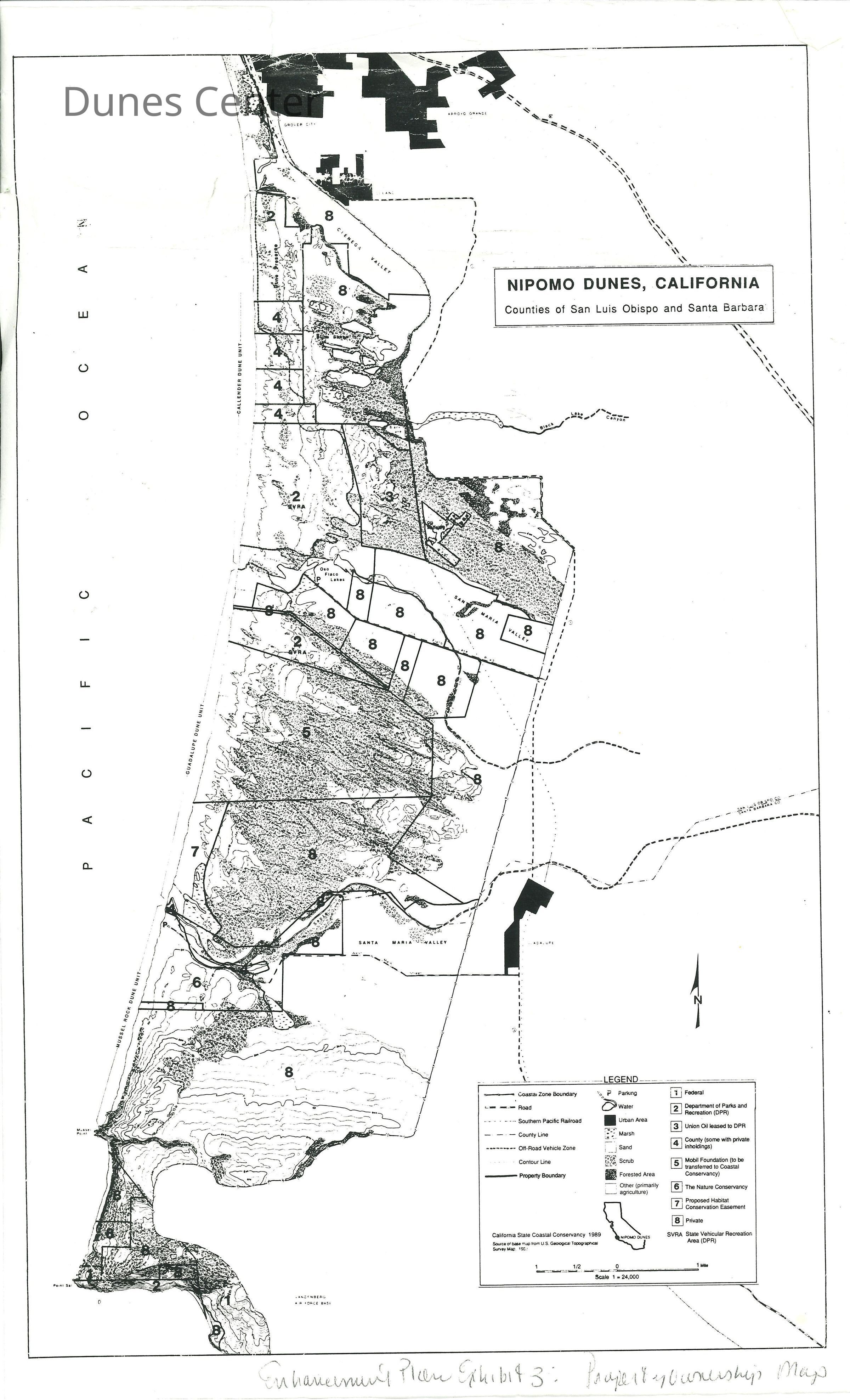 Enhancement Plan Exhibit 3: Map of the Nipomo Dunes with key of property ownership.