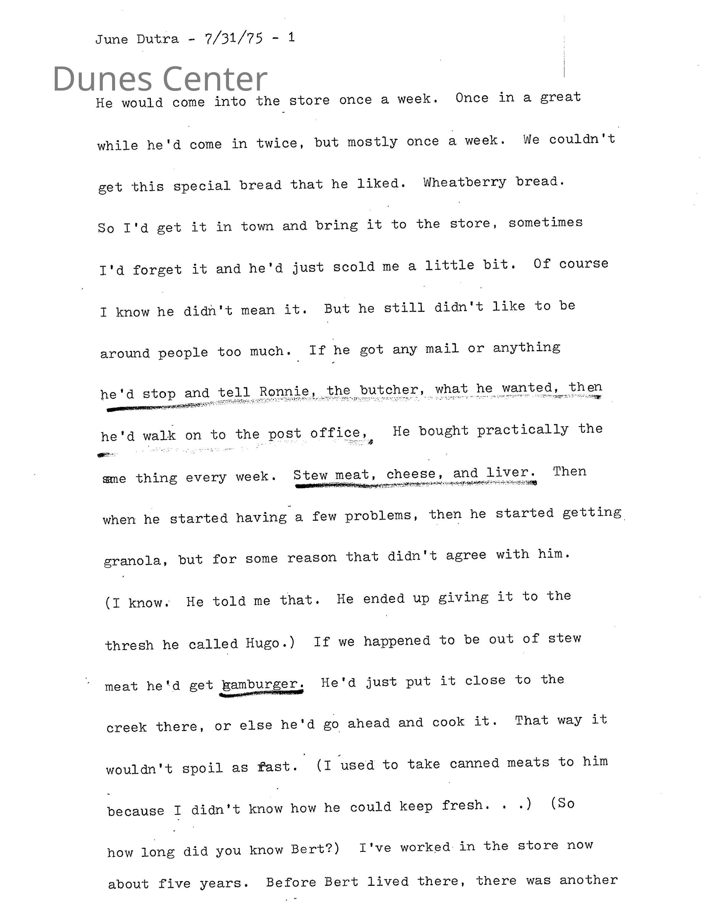 June Dutra interview transcript, regarding Bert Schievink, 1975