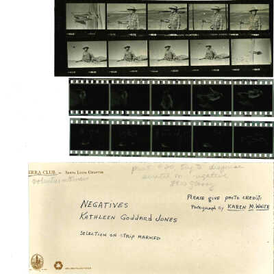 Negatives of photgraphs by Karen M. White of Kathleen Goddard Jones on the sand dunes.