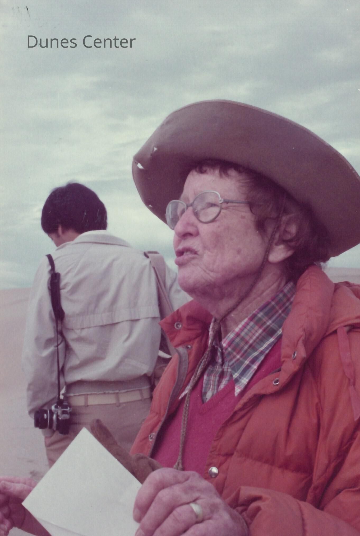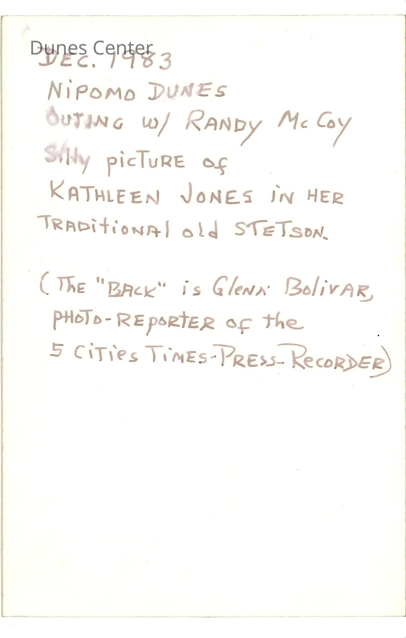 December 1982, photo of Kathleen Goddard Jones on a Nipomo Dunes outing with Randy McCoy.