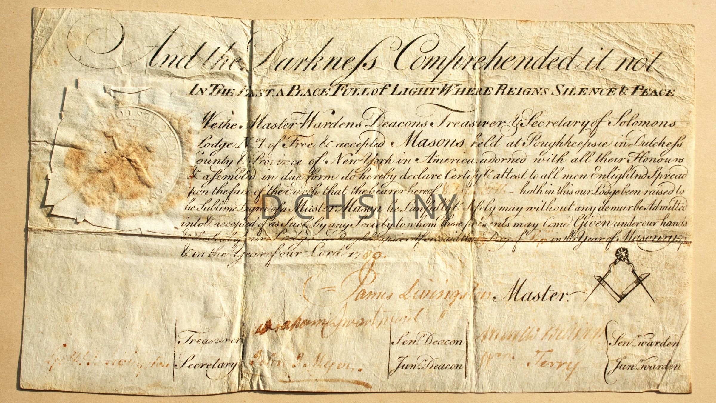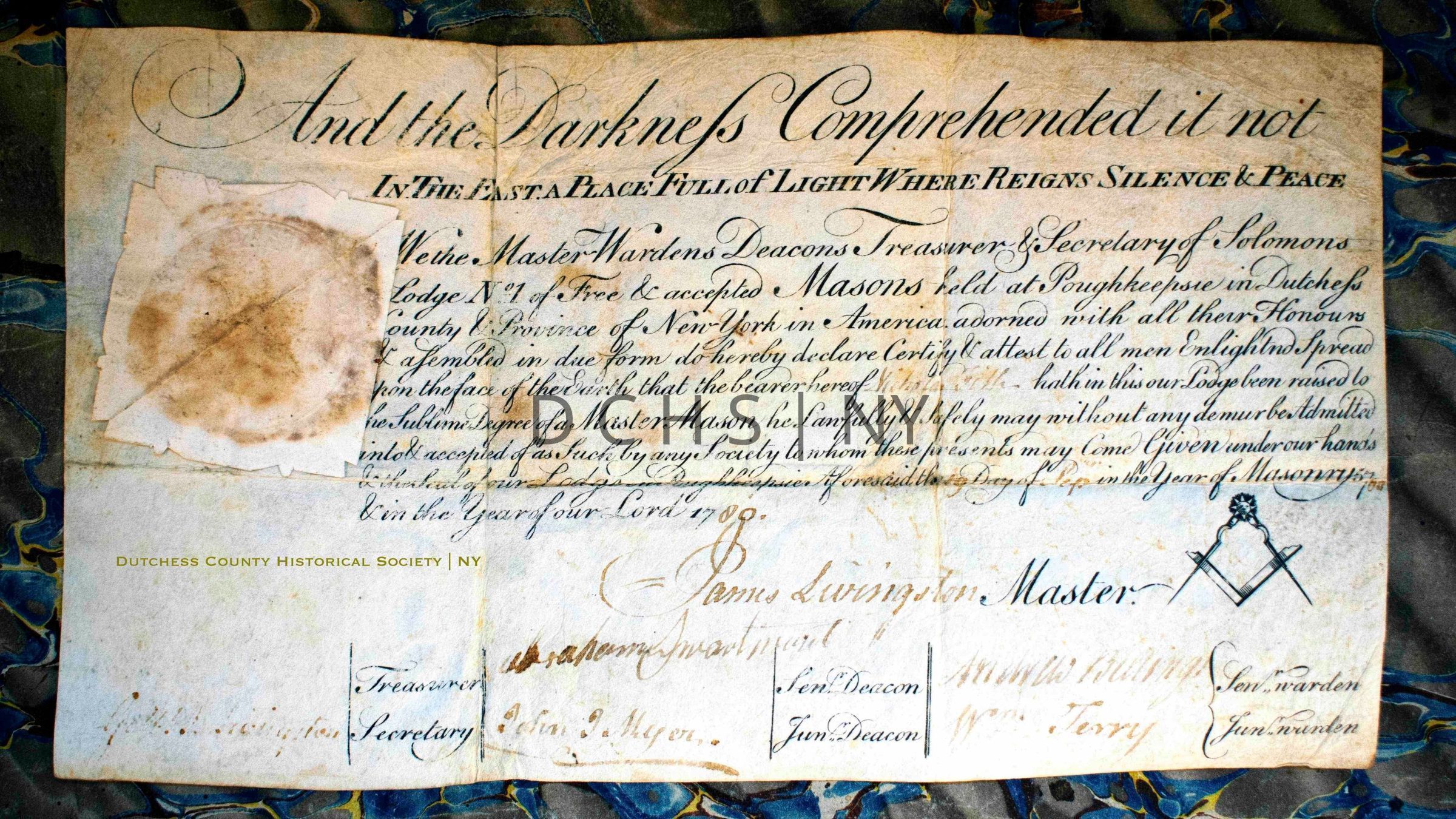 1780 Nicholas Fish Master Mason Certificate