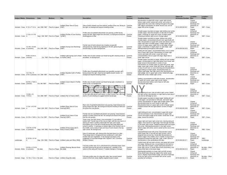 Caroline Clowes sub-collection excel guide