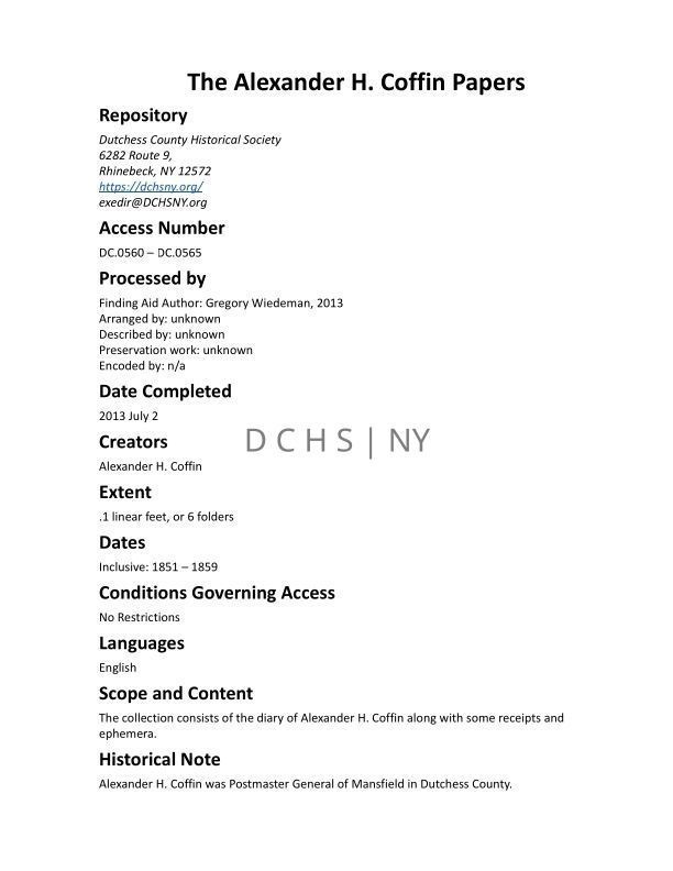COFFIN: Alexander H. Coffin PapersEntry/Object ID