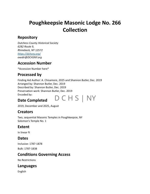 MASONIC LODGE: Poughkeepsie Masonic Lodge No. 266 Collection