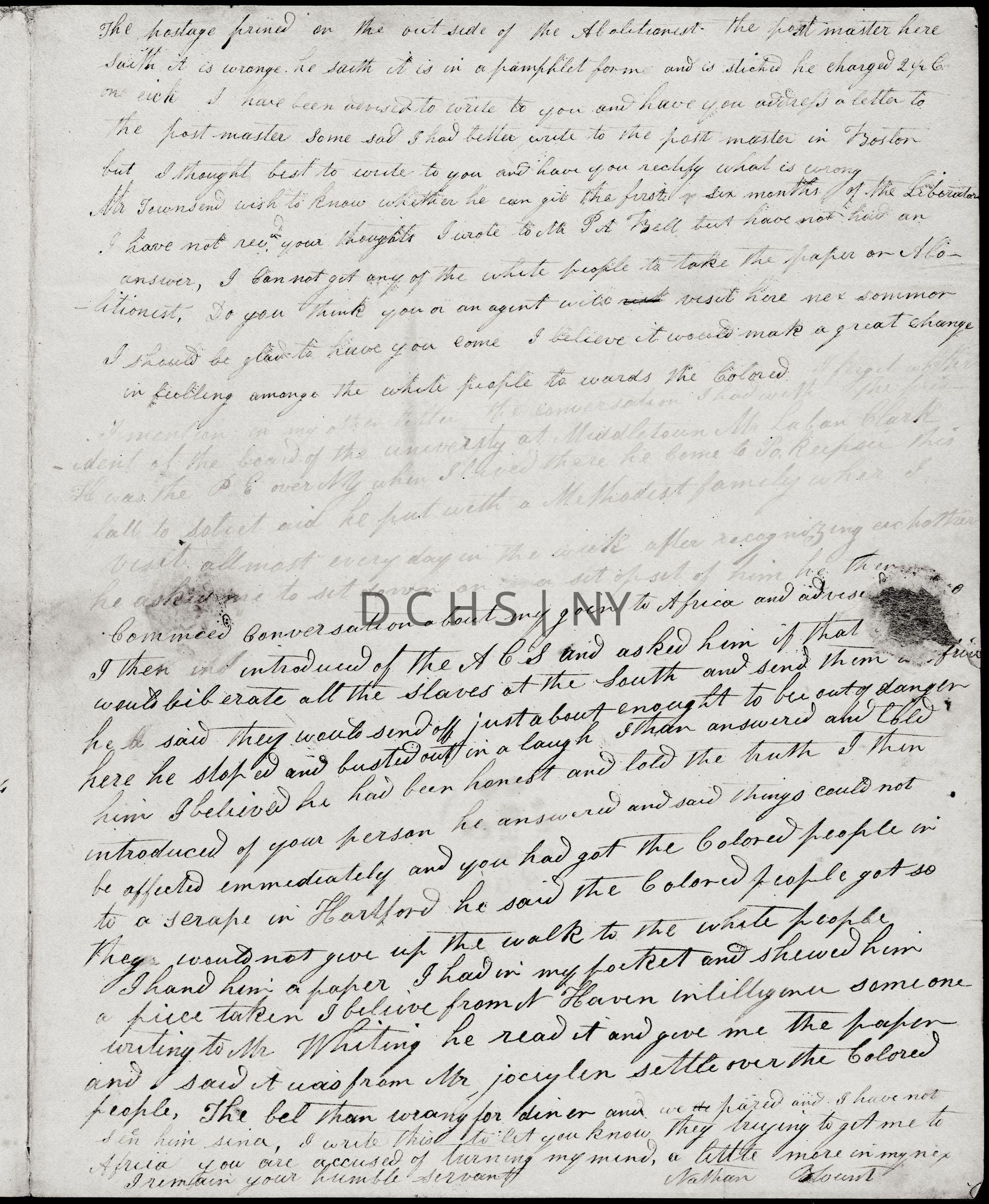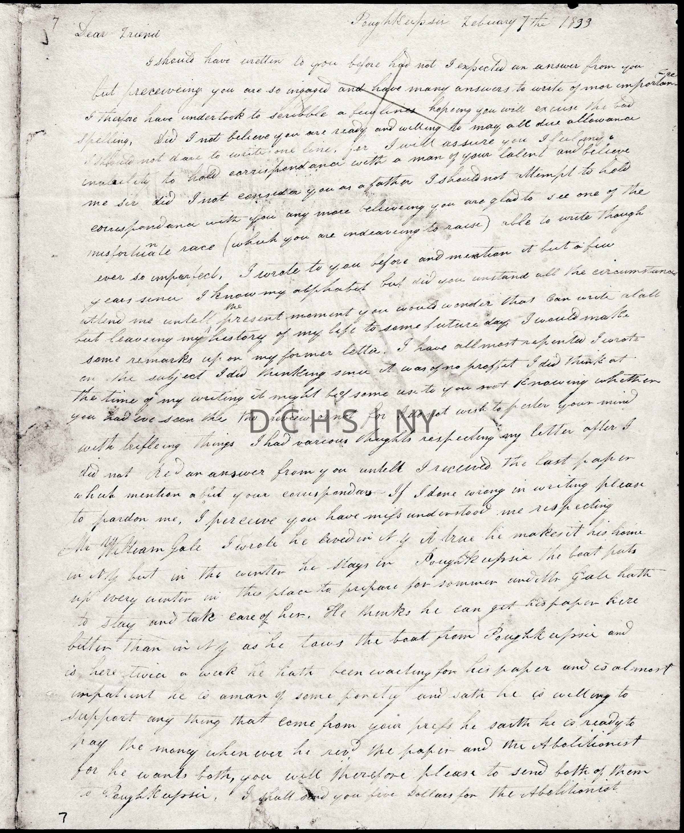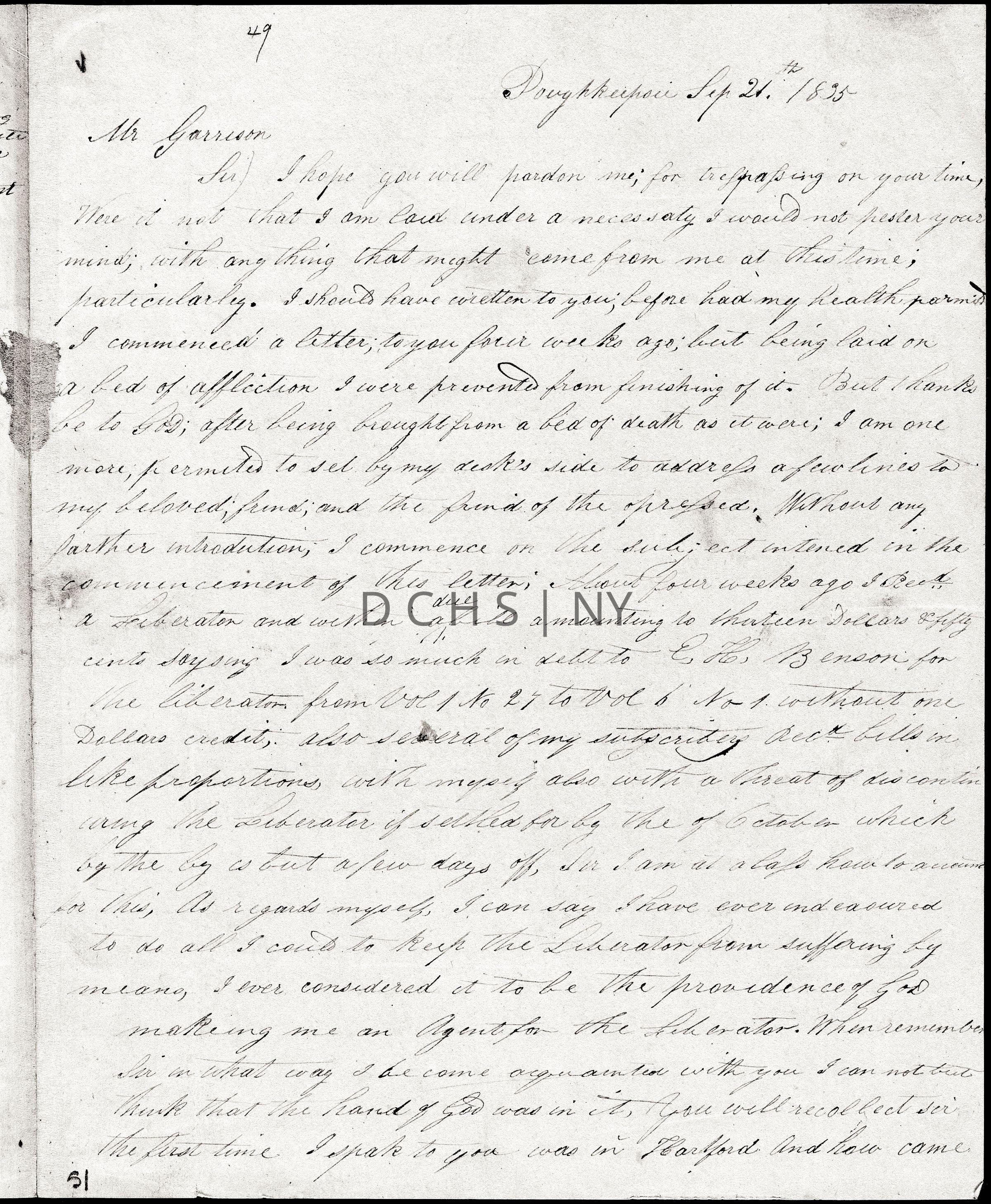 Nathan Blount to Garrison describes abolitionist sentiment in Poughkeepsie