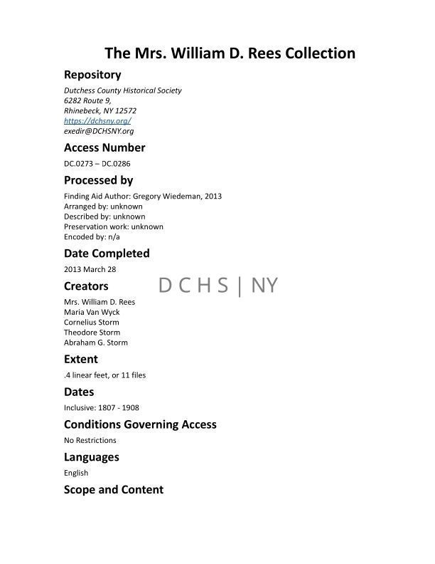 REES: Mrs. William D. Rees CollectionEntry/Object ID