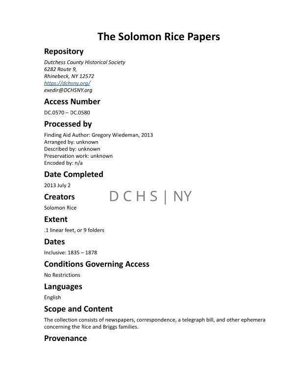 The collection consists of newspapers, correspondence, a telegraph bill, and other ephemera concerning the Rice and Briggs families.Publication Details