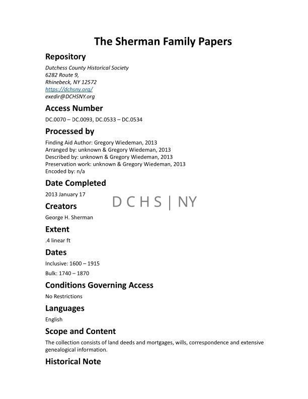SHERMAN: Sherman Family PapersEntry/Object ID