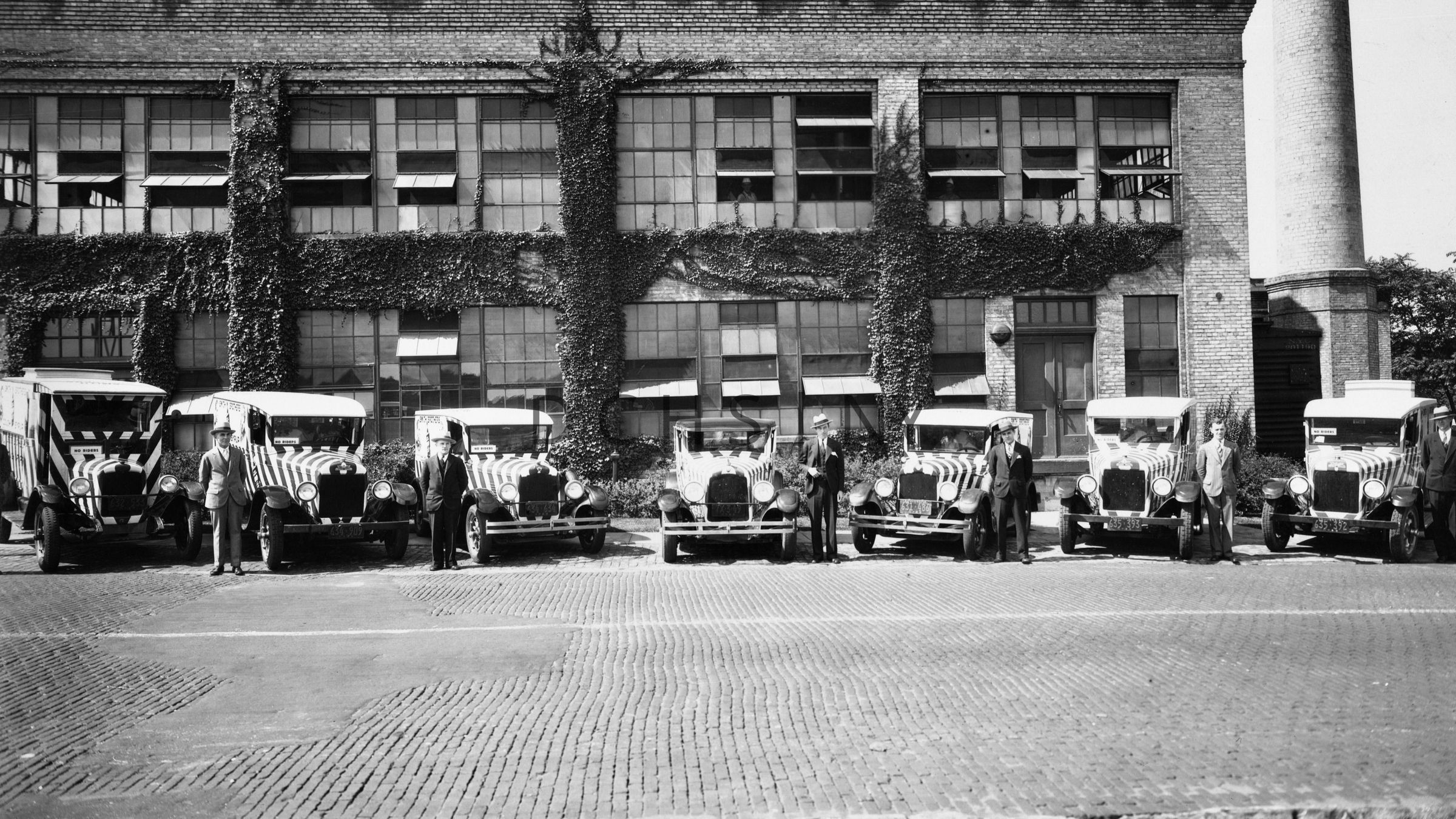 Outside of Smith Brothers' factory, Poughkeepsie, fleet of sales and delivery automobiles.Photograph Details