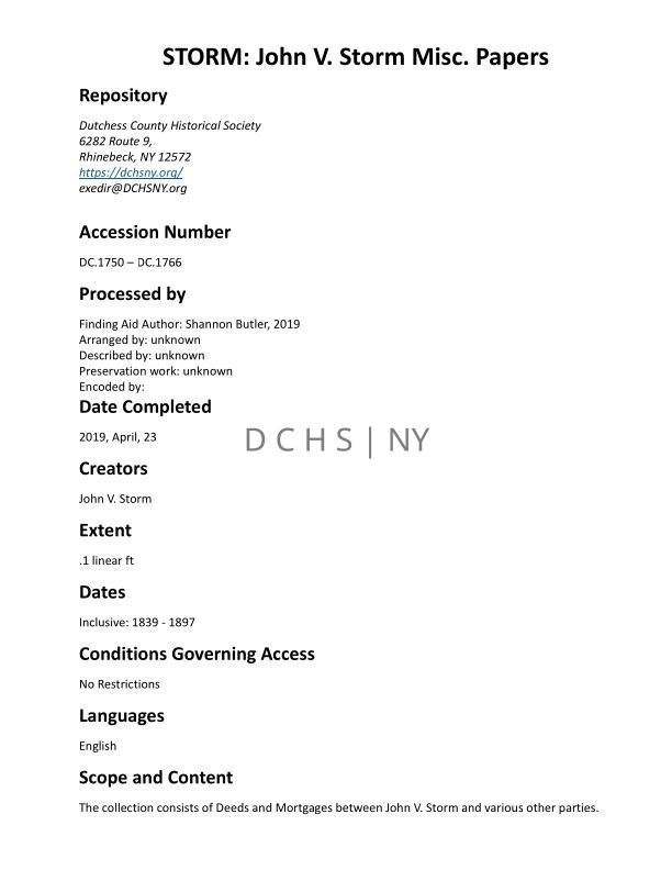 The collection consists of Deeds and Mortgages between John V. Storm and various other parties.Publication Details