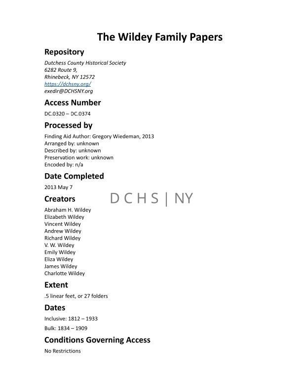 The collection consists of indentures, mortgages, and insurance records for the Wildey family. Also included are wills and records of the settling of family estates.Publication Details