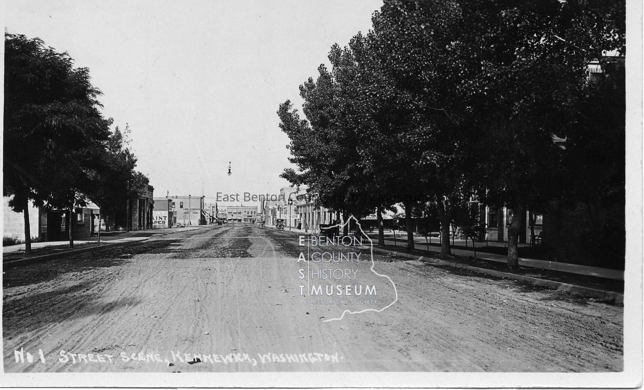Kennewick Ave. "Main Street" showing shade trees on each side of Kennewick Ave.