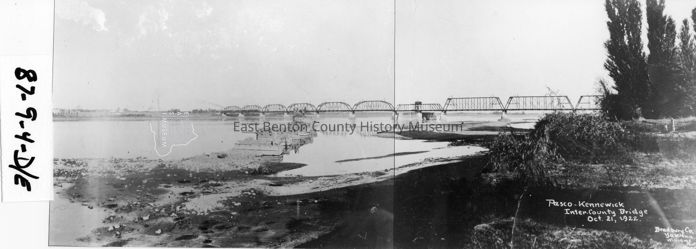 Four part Panoramic view of Railroad and Auto bridges between Pasco and Kennewick