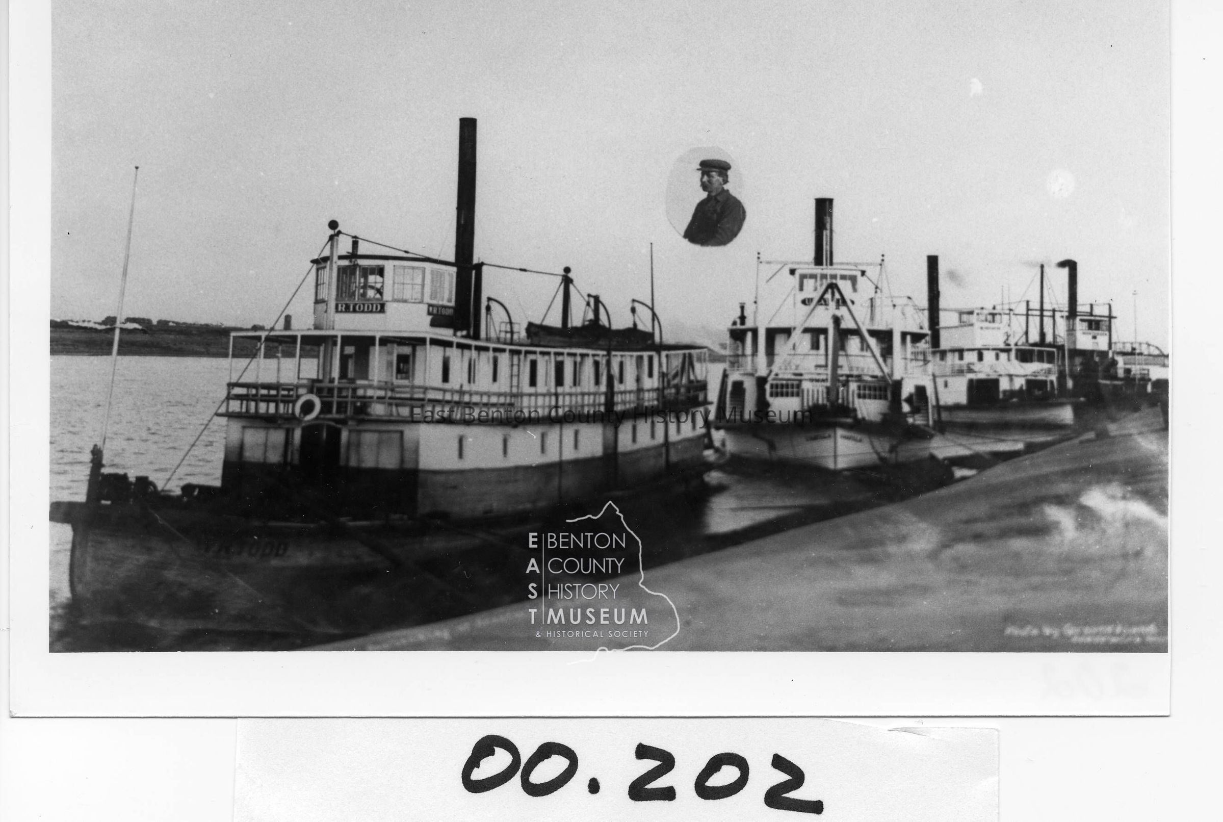 Four Steamboats at the Kennewick Landing. Includes W.R. Todd, Umatilla, Inland Empire, and Mountain Gem. (Todd sunk in 1912)Tags