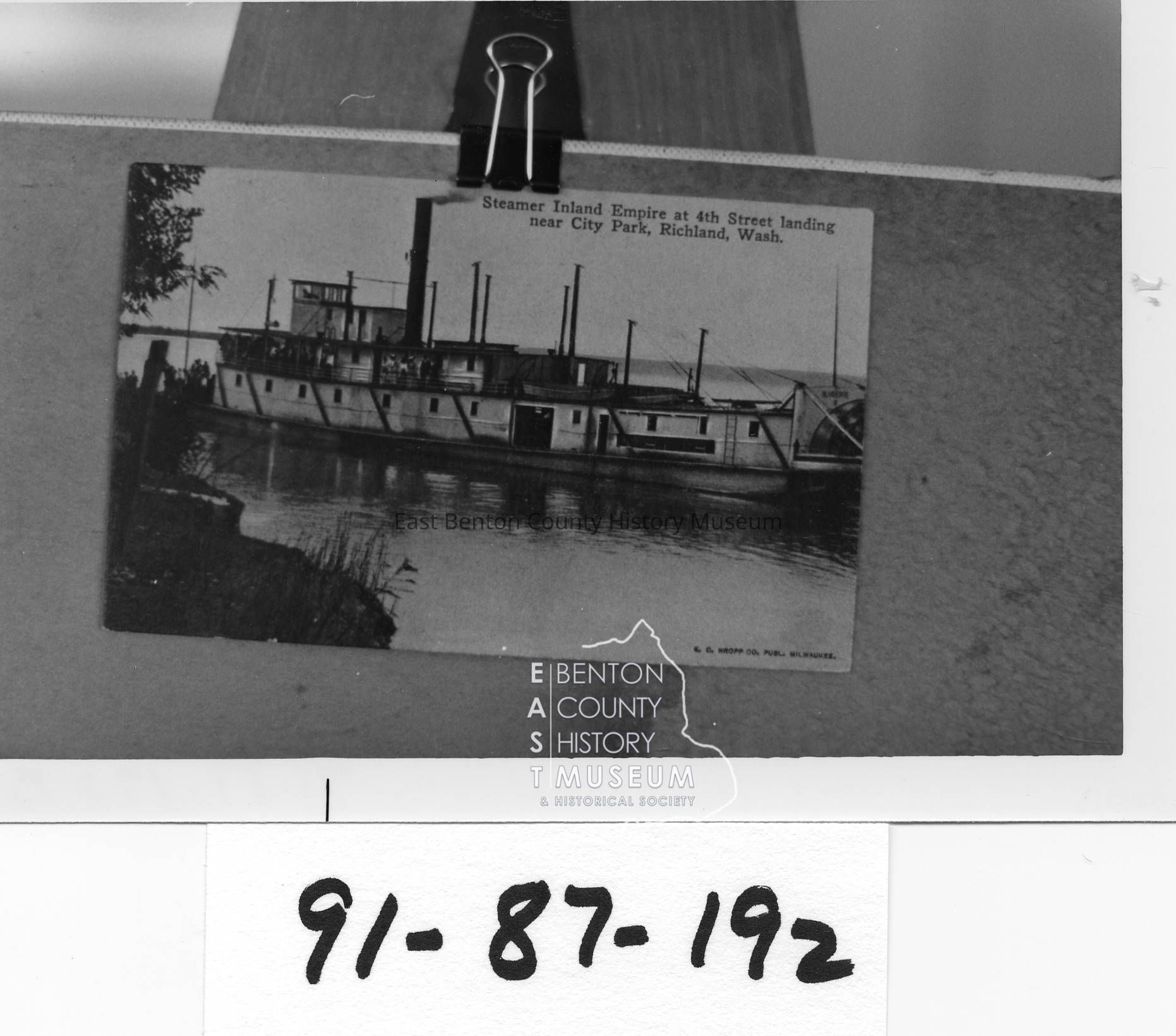 Inland Empire, Steamer, unloading at the foot of 4th Street just north of Amon Park in Richland. Fourth St. is Now Lee Boulevard.Tags