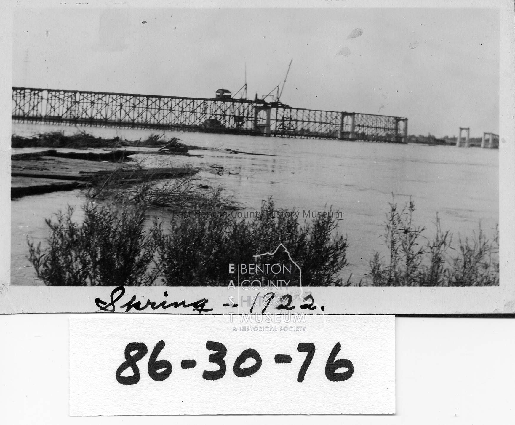 Kennewick Pasco Auto Bridge under construction. Built by a group of investors from Kennewick and Walla Walla Know as Northwest Toll Bridge Company. The state of Washington purchased the bridge in 1931 for $600,000. Funds for purchase were provided by a special act during the 1931 legislature.Tags