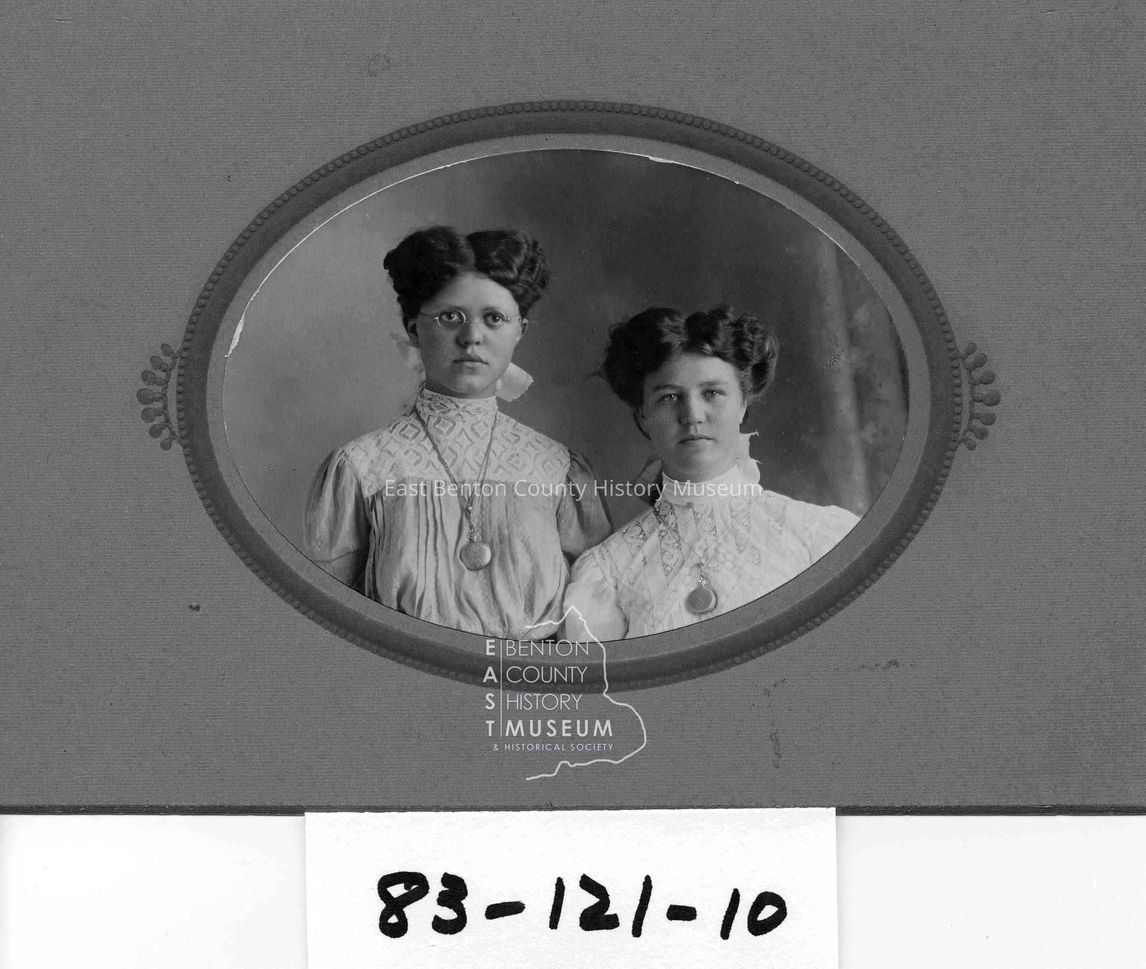 Oval photo of Ruth Amon and Mae Larkin, Ruth was the daughter of W.R. Amon, Later married Carl C. Williams.
