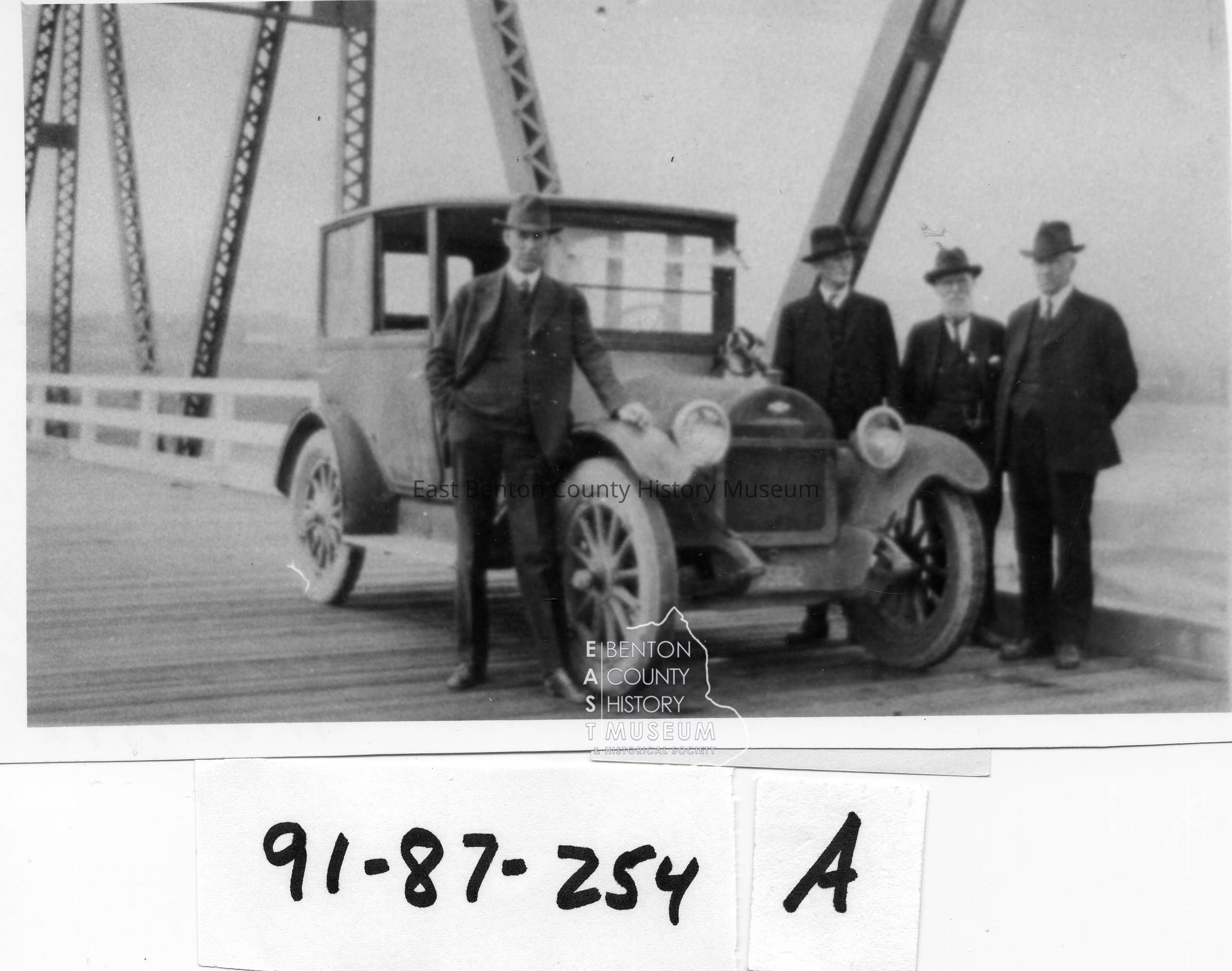 The first car across the Pasco-Kennewick (Green) Bridge. L/R Senator Jones, Senator stinson of Pasco, D.W. Owen of Kennewick, unkown.Tags