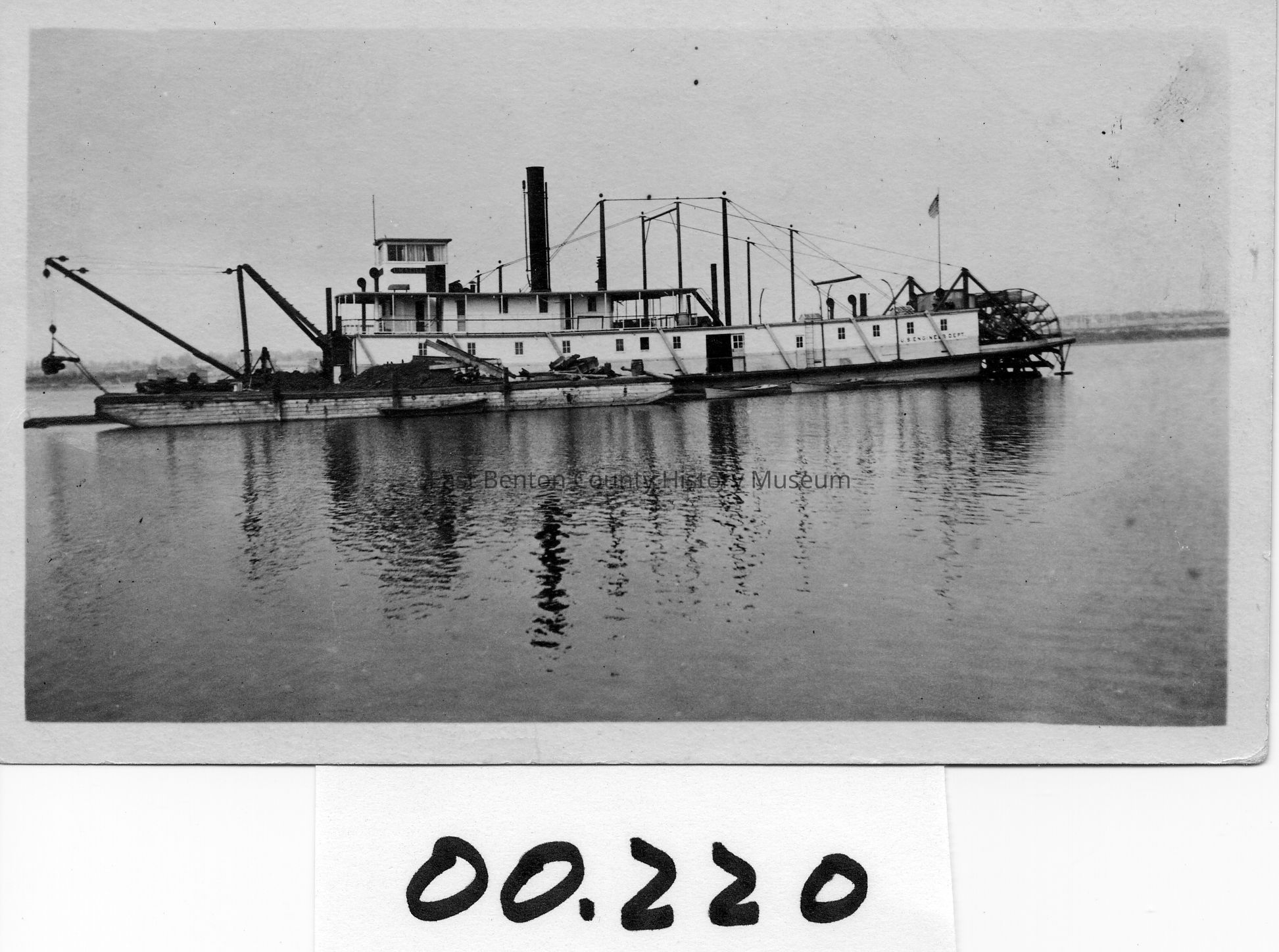 Umatilla steamer alongside a barge with cranes. US Engineer Dept. on stern.Tags