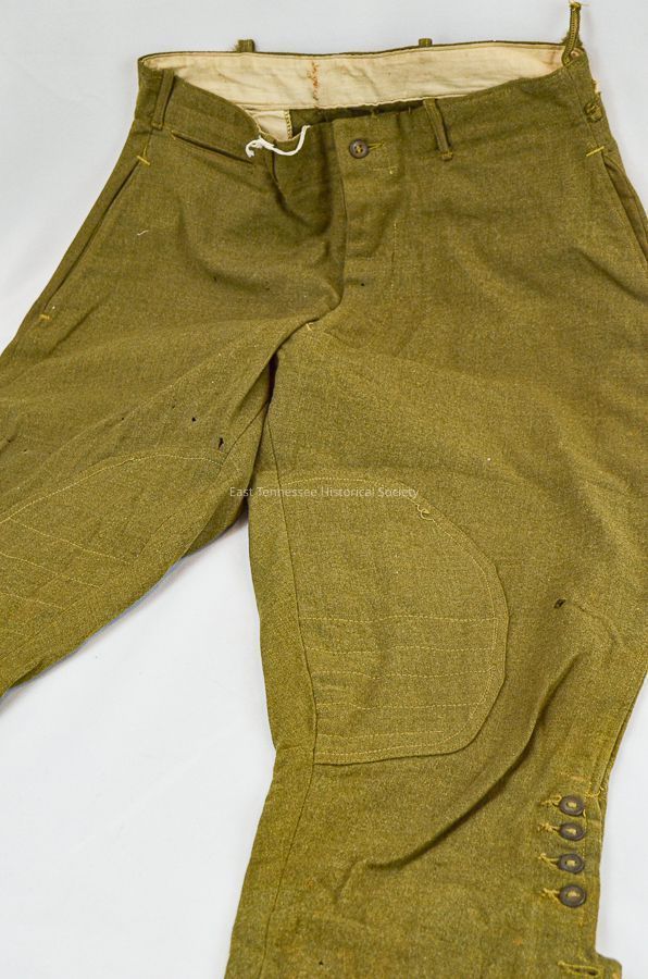 World War I uniform breeches/pants of Ray E. Underwood, olive-drab wool, 1917-1918/WWI.