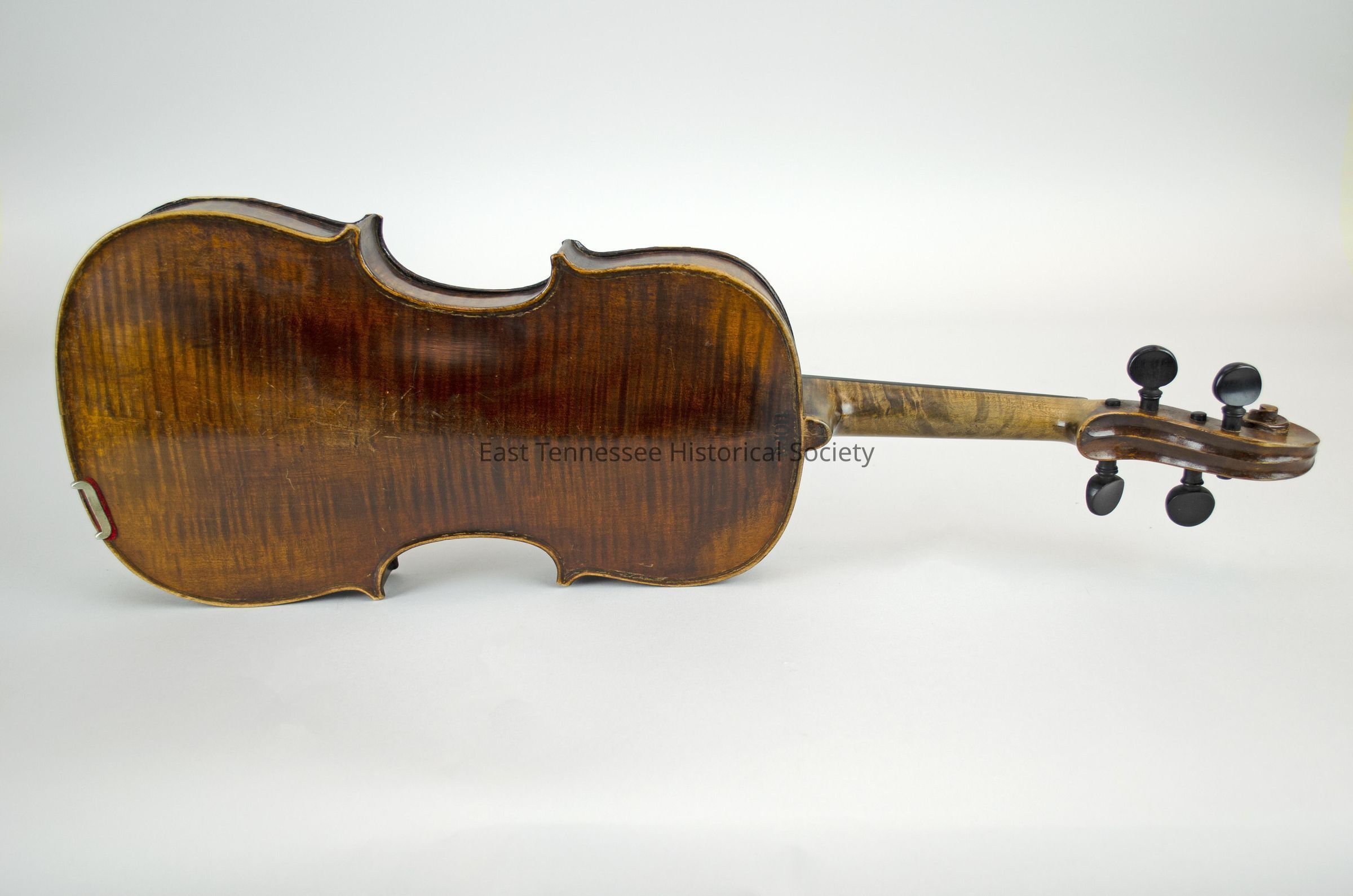 Fiddle owned by Roy Claxton Acuff and given in 1975 to his friend and band member Charles Edward "Charlie" Collins / Acuff's first professional instrument (other than his father's), German commercial grade, dark wood, light-wood bridge (replacement?), "HOPF" brand on reverse at upper body, interior label marked "Alburn Watson/ Violin Maker and Restorer/ Knoxville Tennessee,"* 23 1/2"h x 8"w, 1890-1910**.