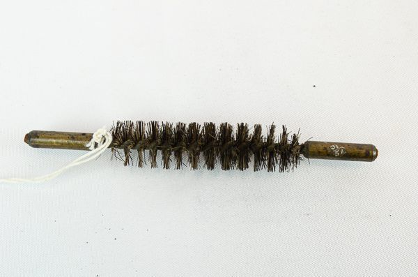 Wiper (cleaner) for Burnside carbine. Horsehair bristles mounted in twisted wire ending in brass caps. Found in the Federal camp near Blaine's Cross Roads, February 1864.