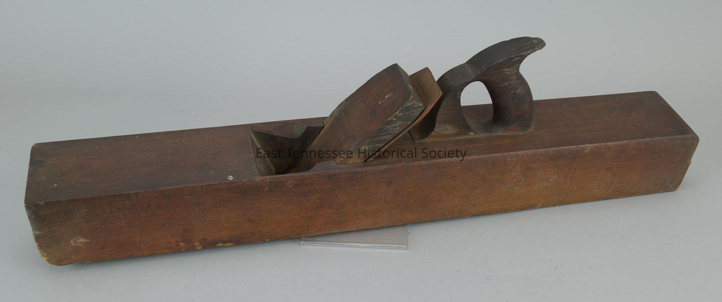 Joiner plane, wood and metal, marked "A Howland & Co. / N.Y." at end in front of saw-type handle, front also marked "E. H. Day" upside down twice and same on back, back end rounded at top, large/7 1/4"h x 3 1/4"w x 26"d, 1869-1874. Manufactured using labor at Auburn State Prison by local historian.