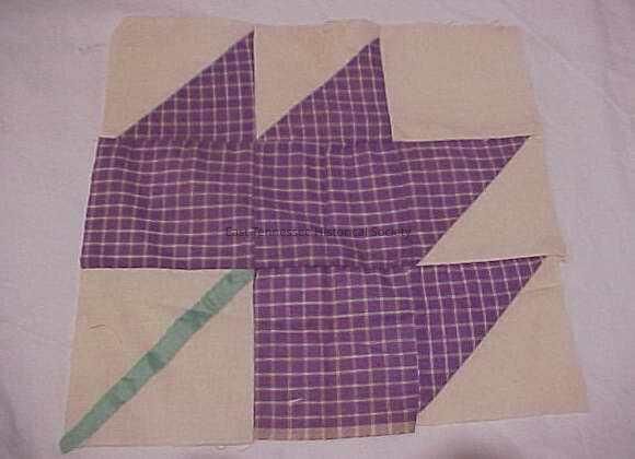 Quilting block. Purple tulip.flower set on a white background. A pale green stem has been sewn onto one of the white squares.Collection