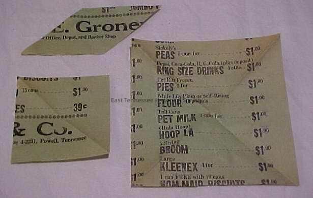 c) Square (6.625in x 6.625in) cut from green paper possibly and advertisement circular.