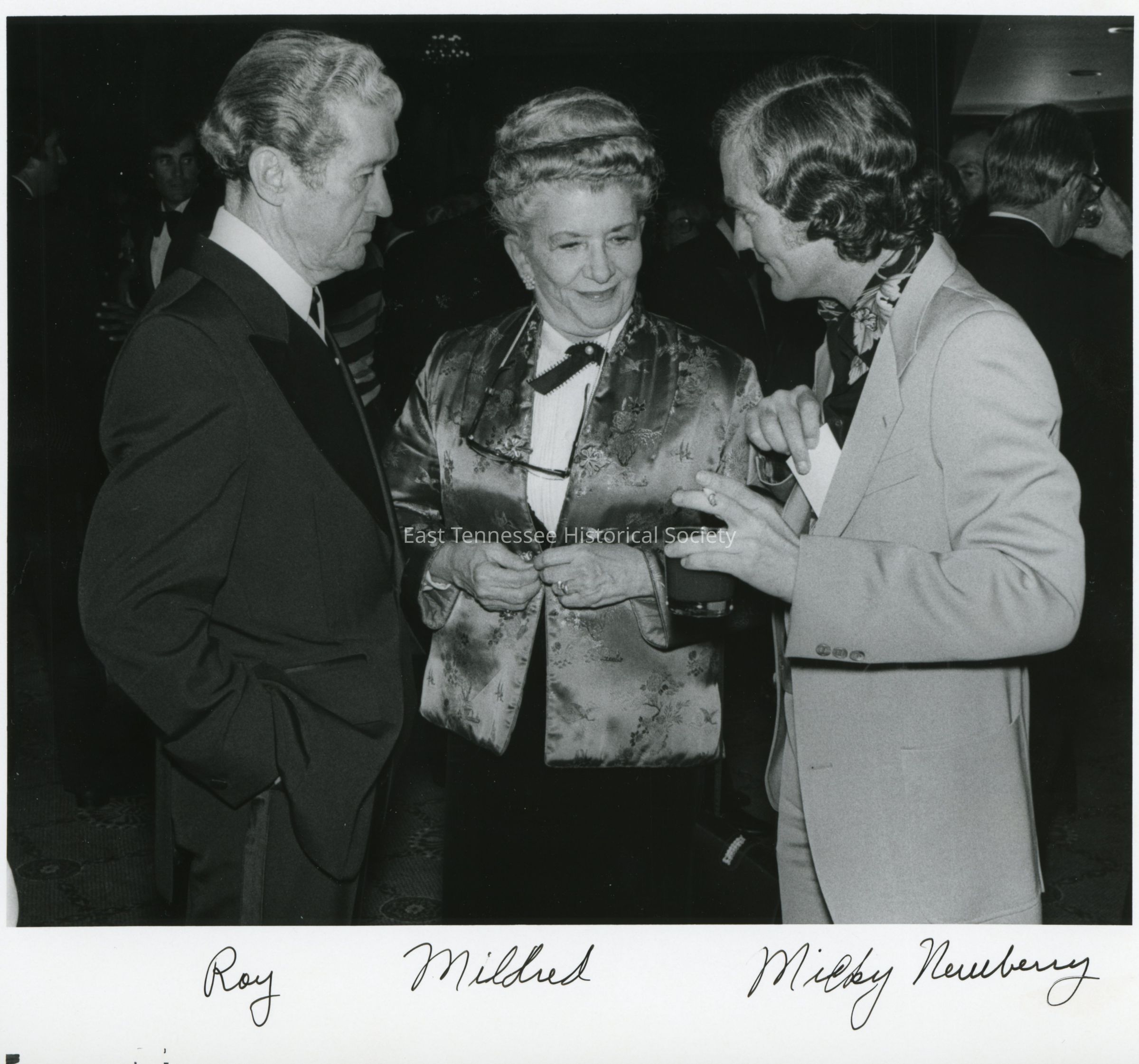 B&W photograph, left to right: Roy Acuff, his wife Mildred, and Mickey Newberry, names hand written in bottom white space on front, reverse stamped "DALE ERNSBERGER/ STAFF PHOTOGRPHER/ THE TENNESSEAN/ OCT 10 1979," 8 1/8 x 8 5/8"w, 10/10/1979.Made/Created