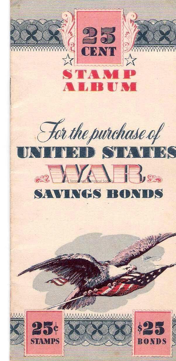 Stamp album for the purchase of U.S. War & Savings bonds, 6 1/4" x 3", c. 1942.