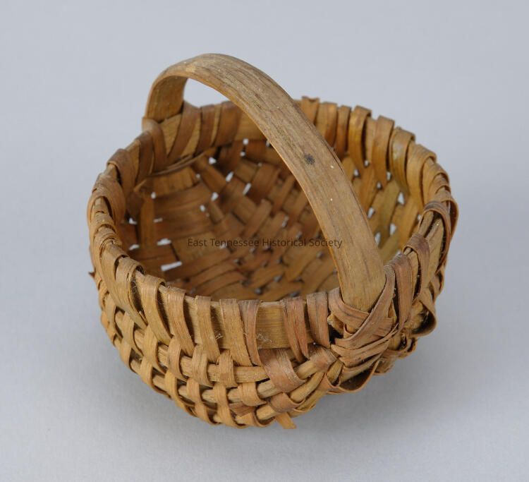 Miniature or one-egg basket given to Mary Dowell, handmade, 2 1/2"h (with handle) x 2 3/4"w x 2 1/2"d, 1950*.