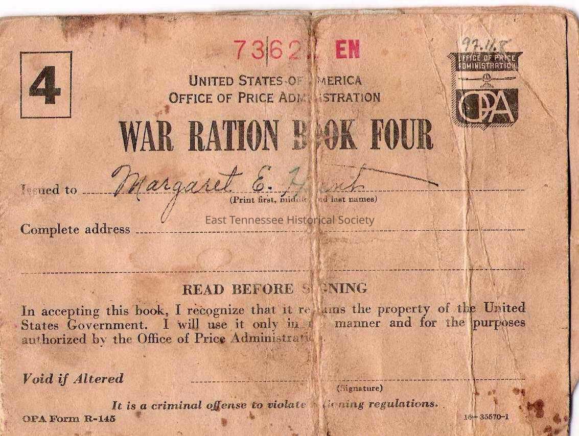 War Ration Book #four issued to Margaret E. Hunt, WWII.