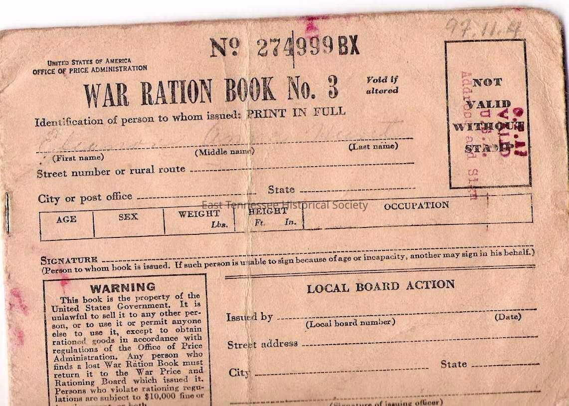 War Ration Book #three issued to Eleanor Anne Hunt, WWII.