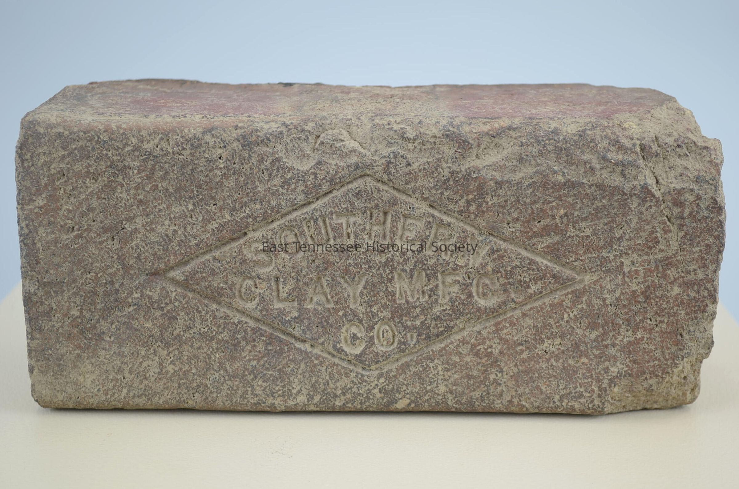 Brick payer/paver, fired red clay faded to brown, stamped "SOUTHERN / CLAY MFG / CO" within diamond on top side, machine made by Southern Clay Manufacturing Company (Robbins, Scott County), 3 1/4"h x 8 3/4"w x 3 3/4"d, stamp used 1902-1937.Made/Created
