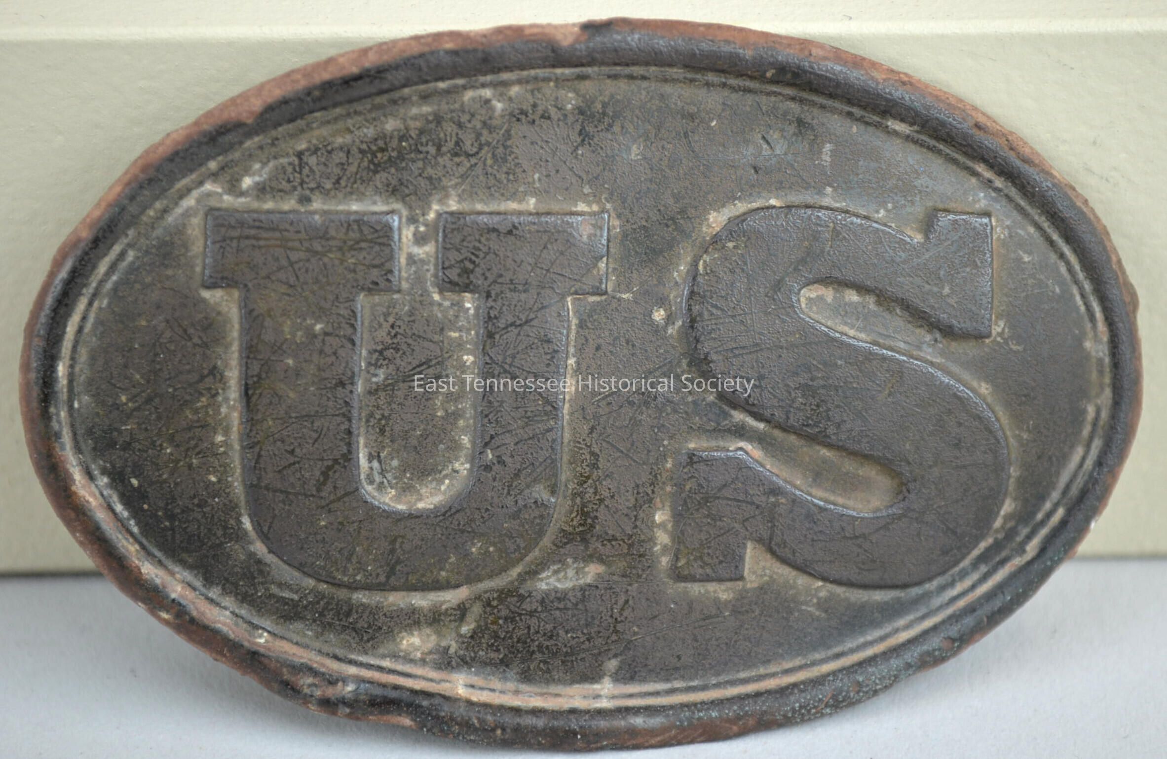 Belt plate for Union Army uniform, oval metal (brass), 2 1/8"h x 3 1/2"w x 3/8"d, Civil War/1861-1865Made/Created