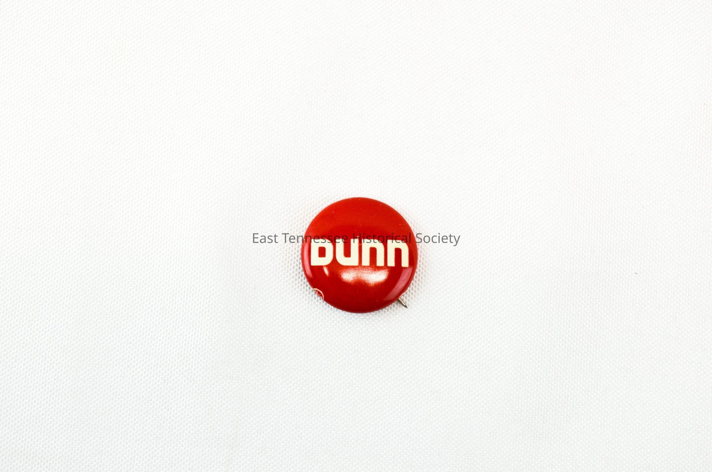 Winfield Dunn campaign button, white "DUNN" on red background, metal, 1" diam., 1969-1970.