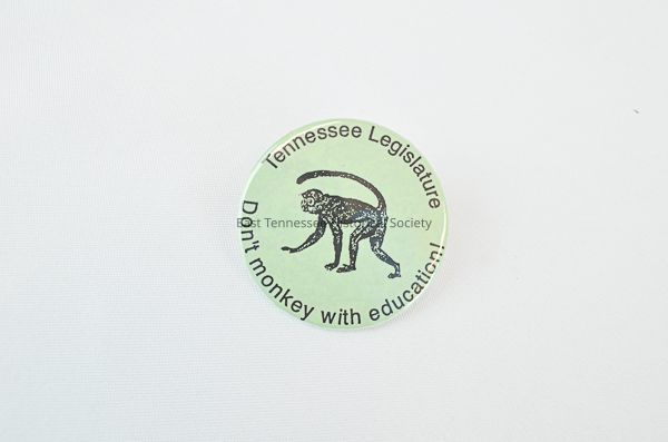 Political button "Tennessee Legislature Don't Monkey With Education." 2 1/4"diam.