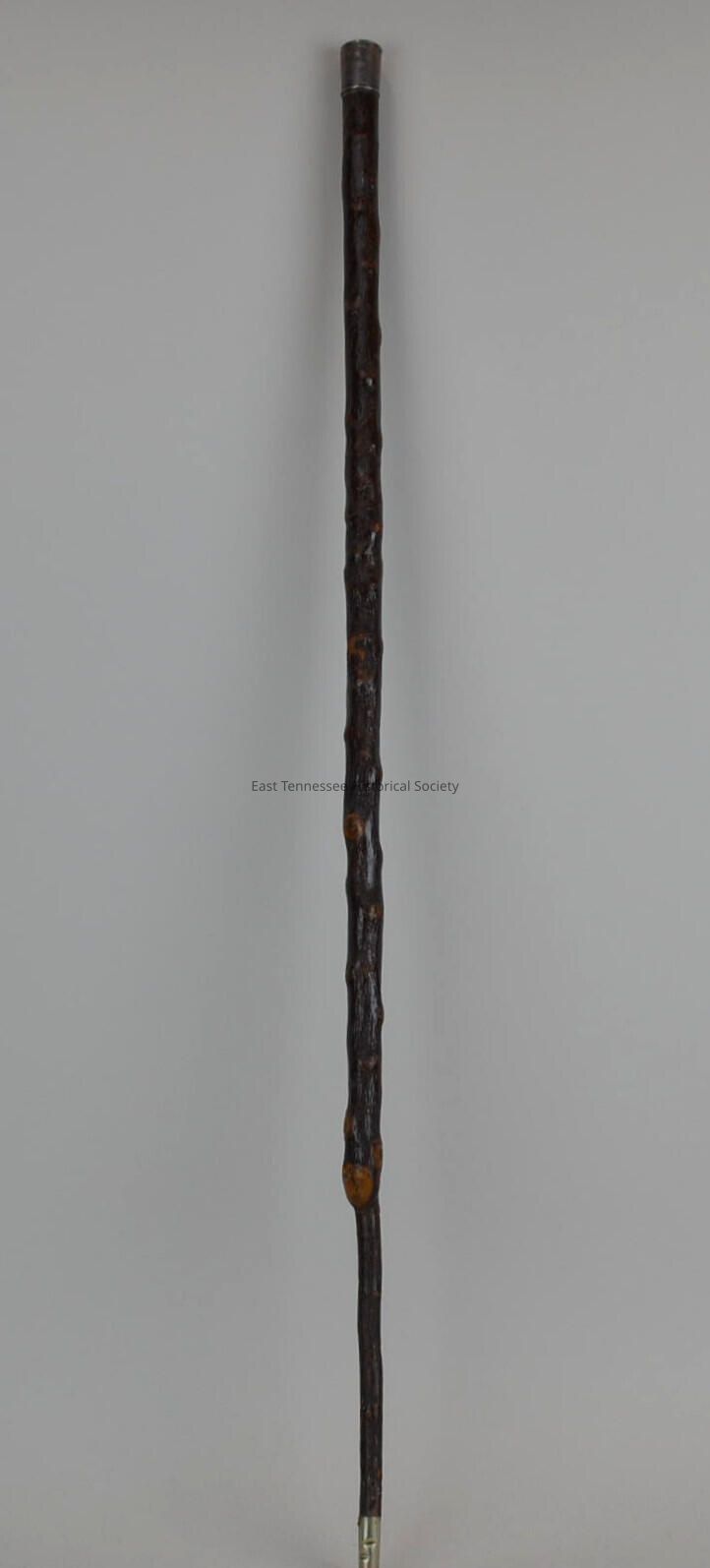 Walking stick made from nubbed branch of sloe tree (Blackthorn), silver-cap at top bears inscription reading "PRESENTED TO / GOV. R.L. TAYLOR / of Tennessee / BY / GOV. THOs. SEAY / AND STAFF / OF ALABAMA 1889" on top and additional inscription on one side reading "cut from the grave / OF / John Sevier / First Governor / Tennessee," 1 1/2"h silver tip (at bottom), maker unknown but probably in Alabama, 35 1/2"h x 1" diam. at cap, 1889.Made/Created