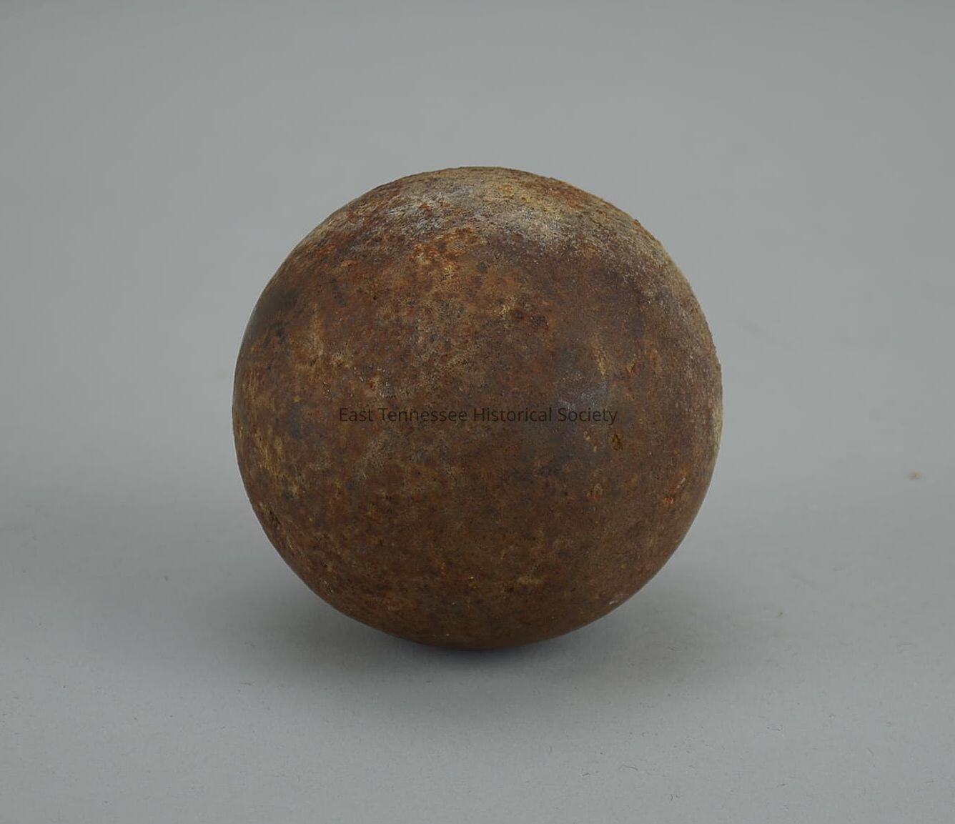 Cannonball, small metal (iron) sphere, manufacturer unknown, 3" diam., Civil War era/c. 1864.