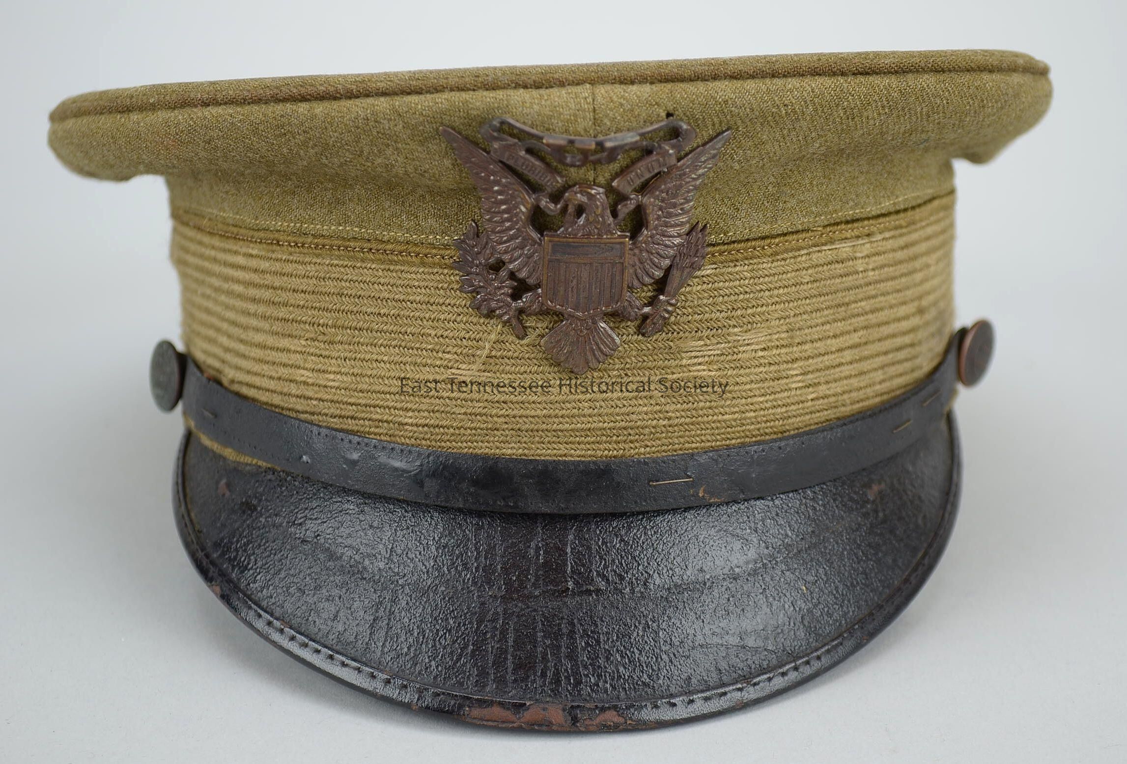 University of Tennessee cadet cap of Stewart Lillard, "U.T." over eagle insignia, State of Tennessee seal button on either side, 1912-1916.