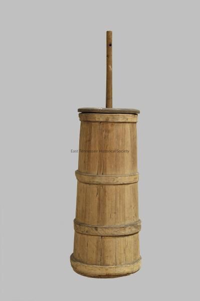a) wooden churn barrel
