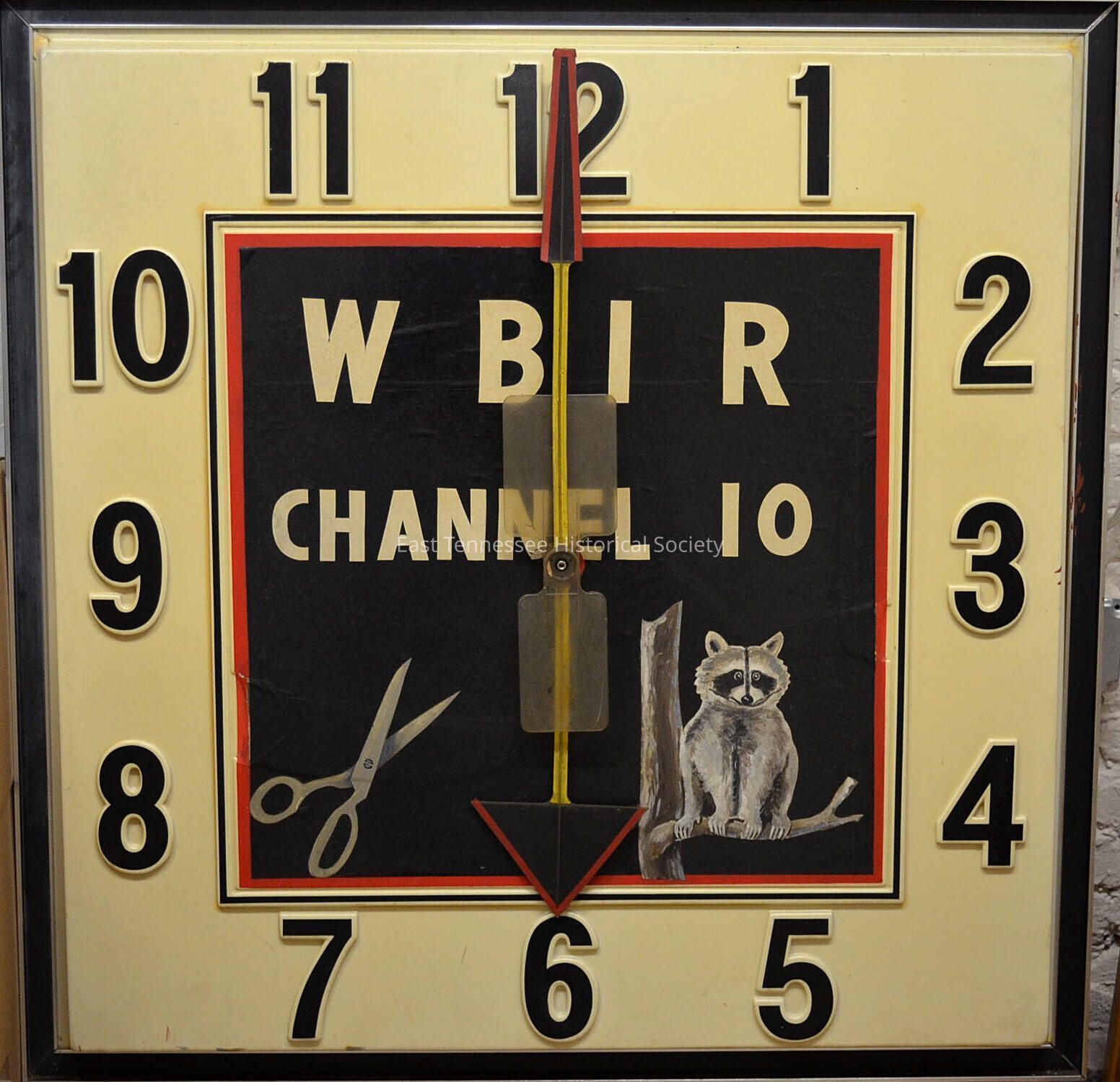Wall clock from Cas Walker television studio set, painted by O. D. Abston, 1958.