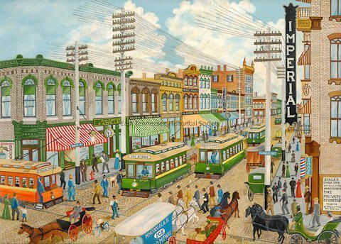 "Corner of Gay and Clinch, 1896" (no. 1), W. R. Briscoe, oil on board, 21" x 29 3/16" with 2" store-purchased wood frame, signed "W. Russell Briscoe" and dated bottom right,1970.Collection