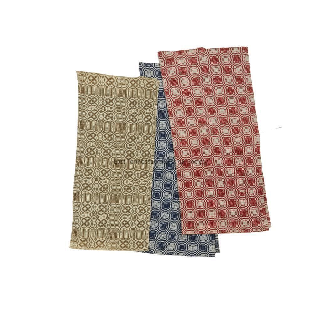 Overshot coverlet attributed to Lucinda McLin Carson or Sophia Caroline McLin, "Sunflower" pattern in dark blue and natural wool and cotton, two panels with seam at center, sides match, 97"h x 72"w, mid-to-late 19th century..
