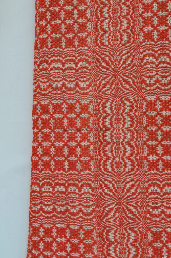 Coverlet, red and white, hand-loomed from Jefferson County, TN, woven on a 32" loom. Gifted from Dr. S. C. Fain 91902-1981) of Jefferson County, TN to his daughter-in-law, Ann Duff Fain (1932-2020), circa 1970.Made/Created