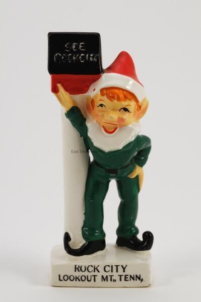Elf figurine marked "ROCK CITY/LOOKOUT MT. TENN," c. late 1950s-early 1960s.