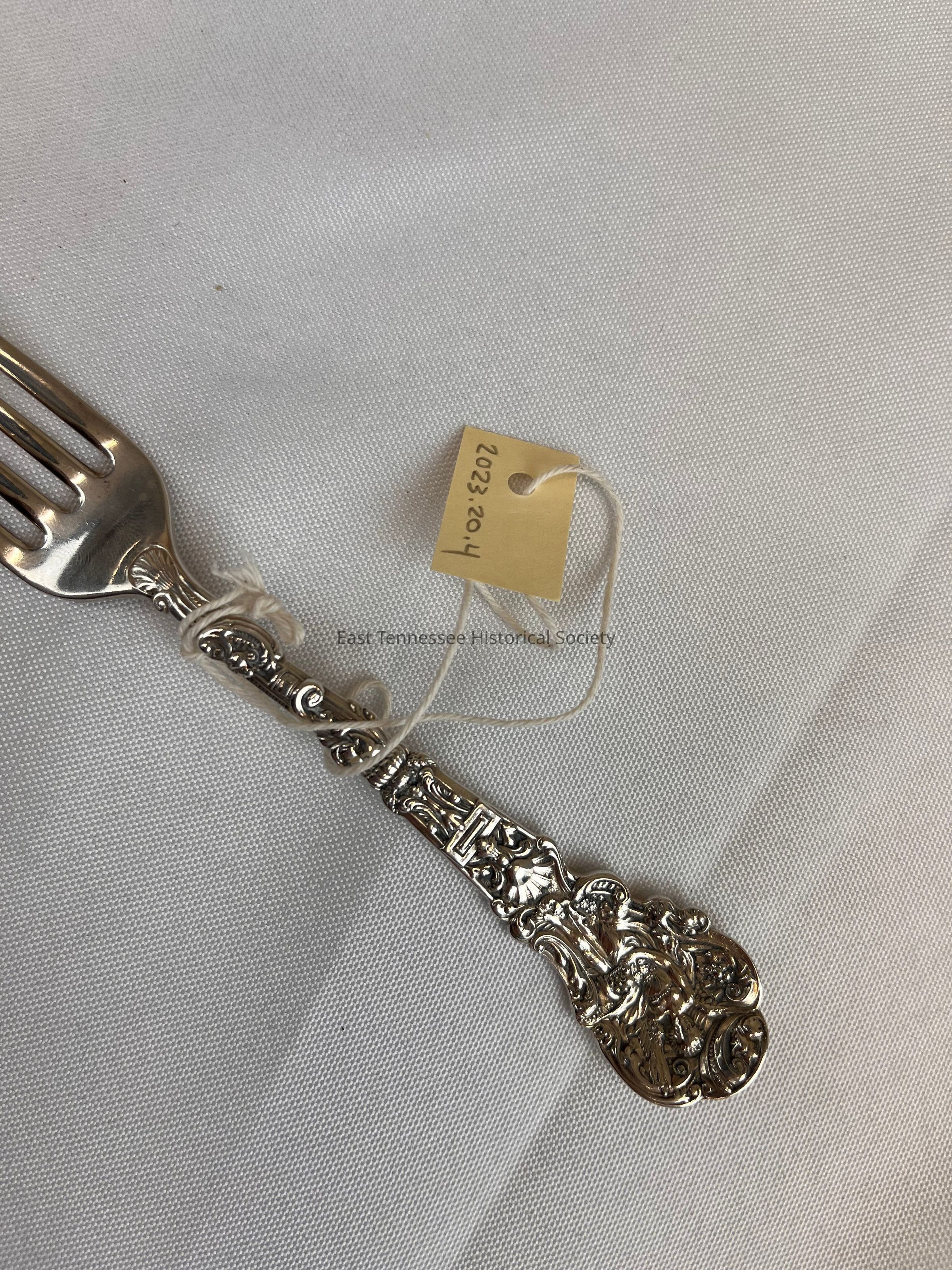Gorham Silver, "Versailles" 1888, Dinner Fork Silver fork decorated with vines and angelic figure with initials engrave "EMcG".